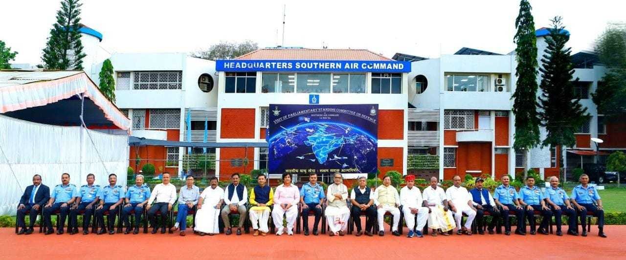 സമിതിയംഗങ്ങളെ ധരിപ്പിച്ചു. കമ്മിറ്റി അംഗങ്ങൾ ദക്ഷിണ വ്യോമസേനാ ഉദ്യോഗസ്ഥരുമായി ആശയവിനിമയം നടത്തുകയും ഇന്ത്യൻ എയർഫോഴ്സിൻ്റെ കഴിവിനെ കുറിച്ചും തന്ത്രപരമായ ശക്തിയിൽ നിന്ന് സമുദ്രാന്തര വ്യാപ്തിയുള്ള മൾട്ടി സ്പെക്ട്രം ഫോഴ്സിലേക്കുള്ള പരിവർത്തനത്തെ കുറിച്ചും ബോധവൽക്കരിച്ചു.