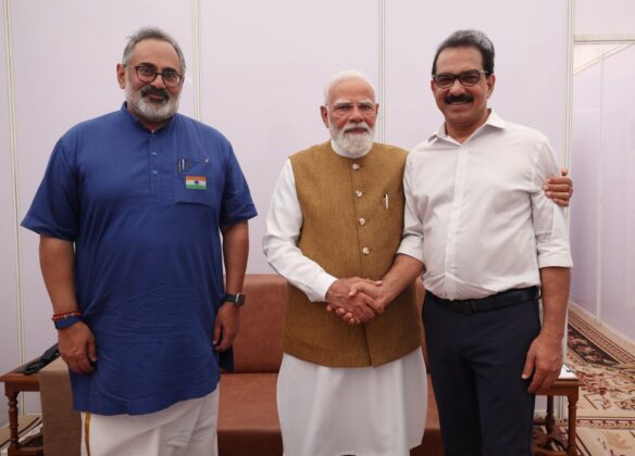 പ്രധാനമന്ത്രി ശ്രീ നരേന്ദ്രമോദിജിയുമായി ട്വന്റി ട്വന്റി ചെയർമാൻ ശ്രീ സാബു ജേക്കബ് പ്രത്യേക കൂടിക്കാഴ്ച്ച നടത്തുന്നു.. ബിജെപി സംസ്ഥാന അധ്യക്ഷൻ സമീപം.