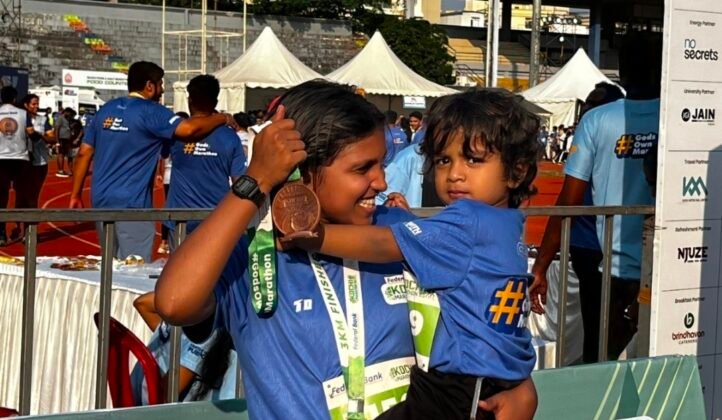 കൊച്ചി: സാധാരണയായി മൂന്നാം പിറന്നാൾ ആഘോഷങ്ങൾ വർണ്ണാഭമായ പാർട്ടികളിലും കേക്ക് മുറിക്കലിലുമാണ് അവസാനിക്കാറുള്ളത്. എന്നാൽ കാലടി സ്വദേശികളായ ശ്യാം ബാബുവിന്റെയും ആതിരയുടെയും മകൻ അയാൻ തന്റെ മൂന്നാം ജന്മദിനം ആഘോഷിക്കാൻ തിരഞ്ഞെടുത്തത് ഫെഡറൽ ബാങ്ക് കൊച്ചി മാരത്തൺ ട്രാക്കായിരുന്നു. കിലോമീറ്ററുകൾ താണ്ടി ഫിനിഷിംഗ് ലൈൻ കടന്നപ്പോൾ, കാണികൾക്ക് മുന്നിൽ ഈ മൂന്ന് വയസ്സുകാരൻ വിസ്മയമായി മാറി. ഫെബ്രുവരി 8-ന് തന്റെ മൂന്നാം ജന്മദിനത്തിൽ തന്നെ മൂന്ന് കിലോമീറ്റർ ദൂരം തളരാതെ ഓടിത്തീർത്ത അയാൻ തന്റെ ജീവിതത്തിലെ ആദ്യ കായിക നാഴികക്കല്ലാണ് പിന്നിട്ടത്. കുഞ്ഞുപാദങ്ങൾ കൊച്ചിയിലെ ട്രാക്കിൽ ആവേശത്തോടെ ചുവടുവെച്ചപ്പോൾ വലിയ കൈയടികളോടെയാണ് കായികപ്രേമികൾ ഈ കുട്ടിത്താരത്തെ വരവേറ്റത്.