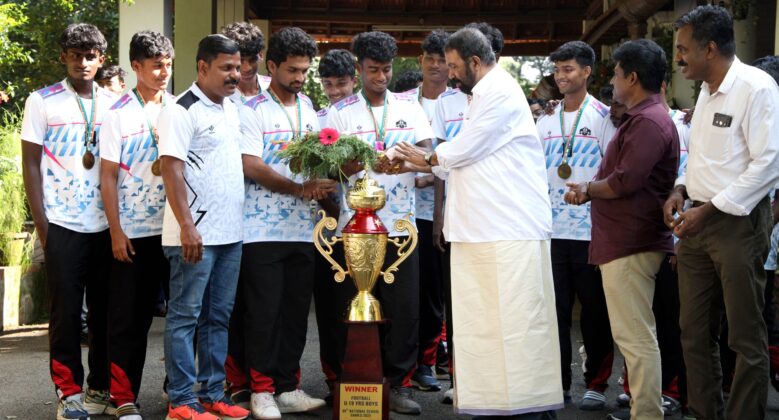 അണ്ടർ 19 ആൺകുട്ടികളുടെ ദേശീയ സ്കൂൾ ഫുട്ബോൾ കിരീടം ചൂടിയ കേരള ടീമിന് വസതിയിൽ സ്വീകരണം ഒരുക്കി പൊതുവിദ്യാഭ്യാസവും തൊഴിലും വകുപ്പ് മന്ത്രി വി ശിവൻകുട്ടി.