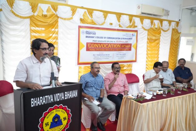 വസ്തുതകളിലും , മൂല്യബോധത്തിലുമൂന്നിയ വാർത്തകൾക്കു എക്കാലവും പ്രസക്തിയുണ്ടെന്ന് മുൻ ചീഫ് സെക്രട്ടറി ഡോ. വി വേണു പ്രസ്താവിച്ചു , ഭാരതീയ വിദ്യാഭൻ ജേർണലിസം കോളേജിലെ നാല്പതിനാലാമതു ബാച്ചിന്റെ അവാർഡ് വിതരണം ഉദ്ഘാടനം ചെയ്തു സംസാരിക്കുകയായിരുന്നു അദ്ദേഹം .മാധ്യമ മേഖലയിലേക്ക് കടന്നു വരുന്നവരെ ഇക്കാര്യം ഇപ്പോഴും ഞാൻ ഓര്മിപ്പിക്കാറുണ്ട് , അത്തരം വർത്തകൾക്കുമാത്രമേ സാമൂഹിക അംഗീകാരം ലഭിക്കൂ എന്ന് അദ്ദേഹം കൂട്ടിച്ചേർത്തു . ഭാരതീയ വിദ്യാഭവൻ ചെയർമാൻ ടി .ബാലകൃഷ്ണൻ അധ്യക്ഷത വഹിച്ച ചടങ്ങിൽ ഡോ. ജി .എൽ .മുരളീധരൻ .എ .കെ നായർ എന്നിവർ പങ്കെടുത്തു .അഖിലേന്ത്യാ റാങ്ക് ജേതാക്കളായ രാഖീ രാജീവ് , എസ്സ്.കൃഷ്ണപ്രിയ , ടി .കെ ആറ്റബീ എന്നിവർ അനുഭവം പങ്കുവെച്ചു . ഭാരതീയ വിദ്യാഭവൻ സെക്രട്ടറി എസ് .ശ്രീനിവാസൻ . സ്വാഗതവും കോളേജ് പ്രിൻസിപ്പൽ പ്രസാദ് നാരായണൻ നന്ദിയും പ്രകാശിപ്പിച്ചു .