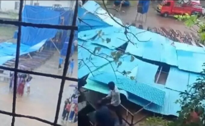 കലോത്സവത്തിനായി കെട്ടിയ താല്ക്കാലിക പന്തലാണ് ശക്തമായ കാറ്റിലും മഴയിലും തകര്ന്ന് വീണത്. അപകടത്തില് ഗുരുതരമായി പരിക്കേറ്റ അധ്യാപിക രശ്മിയെ പാരിപ്പള്ളി മെഡിക്കല് കോളേജ് ആശുപത്രിയില് പ്രവേശിപ്പിച്ചു.