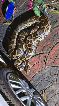 ആറ്റിങ്ങൽ: റോഡരുകിൽ കൂറ്റൻ പെരുമ്പാമ്പിനെ കണ്ട് വാഹന യാത്രക്കാർ ഞെട്ടി കീഴാറ്റിങ്ങൽ മദർ ഇന്ത്യാ സ്കൂളിന് സമീപമാണ് കഴിഞ്ഞ ദിവസം രാത്രി ഒമ്പതരയോടെ പെരുമ്പാമ്പിനെ കണ്ടത് . കാറിലെ യാത്രക്കാരാണ് റേഡിൽ ഭീമകാരനായ പാമ്പിനെ ആദ്യം കണ്ടത് . അവർ ബഹളം വെച്ചതോടെ നാട്ടുകാരും എത്തി. ആൾ കൂട്ടവും ബഹളവും കൂടിയതോട വീടിനു സമീപത്തെ കാറിനടിയിലേയ്ക്ക് പാമ്പ് ഇഴഞ്ഞു. നീങ്ങി. ഒടുവിൽ ഫോറസ്റ്റ് അധികൃതർ എത്തി പാമ്പിനെ കവറിനുള്ളിൽ കയറ്റുകയായിരുന്നു. 15 അടിയോളം നീളമുള്ള പെൺ ഇനത്തിൽ പെട്ട പെരുമ്പാമ്പാണന്ന് അധികൃതർ പറഞ്ഞു.
