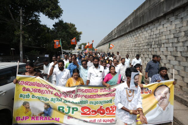 തിരുവനന്തപുരം: ന്യൂനപക്ഷങ്ങള്ക്കെതിരെ സിപിഎം സ്വീകരിക്കുന്ന പുതിയ നിലപാടുകള് പോലും ശബരിമല സ്വര്ണ്ണക്കൊള്ളയില് നിന്ന് ശ്രദ്ധതിരിക്കാനെന്ന് മുന് കേന്ദ്രമന്ത്രിയും ബിജെപി മുന് സംസ്ഥാന അധ്യക്ഷനുമായ വി മുരളീധരന്. ശബരിമലയിലെ സ്വര്ണ്ണം കൊള്ളയടിച്ച സിപിഎം-കോണ്ഗ്രസ് കുറുവാ സംഘത്തിനെതിരെ നടപടി ആവശ്യപ്പെട്ട് മുന്മന്ത്രി കടകംപള്ളി സുരേന്ദ്രന്റെ കഴക്കൂട്ടത്തെ വസതിയിലേക്ക് ബിജെപി നടത്തിയ മാര്ച്ച് ഉദ്ഘാടനം ചെയ്യുകയായിരുന്നു മുരളീധരന്.