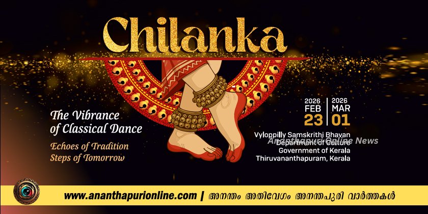 തിരുവനന്തപുരം വൈലോപ്പിള്ളി സംസ്കൃതി ഭവന്റെ ആഭിമുഖ്യത്തില്‍ തലസ്ഥാന നഗരിയിലെ നൃത്തോത്സവമായ ‘ചിലങ്ക 2026‘ ന് തിരിതെളിഞ്ഞു. സാമൂഹ്യ നീതി, ഉന്നത വിദ്യാഭ്യാസ വകുപ്പ് മന്ത്രി ബഹു. ഡോ. ആര്‍ ബിന്ദുവാണ് ഉദ്ഘാടനം കര്‍മ്മം നിര്‍വഹിച്ചത്.