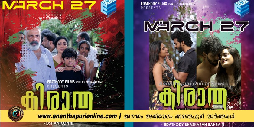 യുവത്വത്തിൻ്റെ ചൂടും തുടിപ്പും ചടുലതയും ഉൾപ്പെടുത്തി കോന്നിയുടെയും അച്ചൻ കോവിലിൻ്റെയും പശ്ചാത്തലത്തിൽ ഒരുക്കിയ ക്രൈം ത്രില്ലർ ചിത്രം “കിരാത” മാർച്ച് 27-ന് കേരളത്തിലെ തീയേറ്ററുകളിലെത്തുന്നു. പാട്ടും ആട്ടവുമായി അച്ചൻ കോവിലാറിൻ്റെ നിഗൂഡതകളിലേക്ക് ഇറങ്ങിച്ചെല്ലുന്ന പ്രണയ ജോഡികൾക്ക് തുടർന്ന് നേരിടേണ്ടി വരുന്നത് ഭീകരതയുടെ ദിനരാത്രങ്ങളാണ്. കോന്നിയുടെ മനോഹര പശ്ചാത്തലത്തിൽ അരങ്ങേറുന്ന പ്രണയ ജോഡികളുടെ പാട്ടും ഡാൻസും ആക്ഷനുമെല്ലാം പ്രേക്ഷകർക് ആസ്വാദനത്തിൻ്റെ പുതുമ സമ്മാനിക്കുന്ന തരത്തിലാണ് അവതരിപ്പിക്കുന്നത്. കോന്നിയുടെ ദൃശ്യമനോഹാരിതയും ഗ്രാമഭംഗിയും വിസ്മയക്കാഴ്ച്ചകളുടെ വിഷ്വൽ ട്രീറ്റൊരുക്കുന്നുവെന്ന സവിശേഷതയും കിരാതയ്ക്കുണ്ട്.