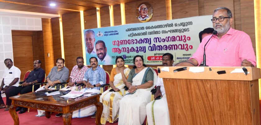 പരമ്പരാഗത കൈത്തൊഴിലുകൾ പ്രോത്സാഹിപ്പിക്കണമെന്നും അതിലൂടെ ജനങ്ങളുടെ ജീവിതവും ആരോഗ്യവും മെച്ചപ്പെടുത്താൻ കഴിയുമെന്നും കൃഷിവകുപ്പ് മന്ത്രി പി പ്രസാദ്. ജില്ലയിൽ നിന്നും തിരഞ്ഞെടുക്കപ്പെട്ട വനിതാ സംഘങ്ങളുടെ ഗുണഭോക്തൃ സംഗമവും ധനസഹായ വിതരണവും ഉദ്ഘാടനം ചെയ്തു സംസാരിക്കുകയായിരുന്നു മന്ത്രി.